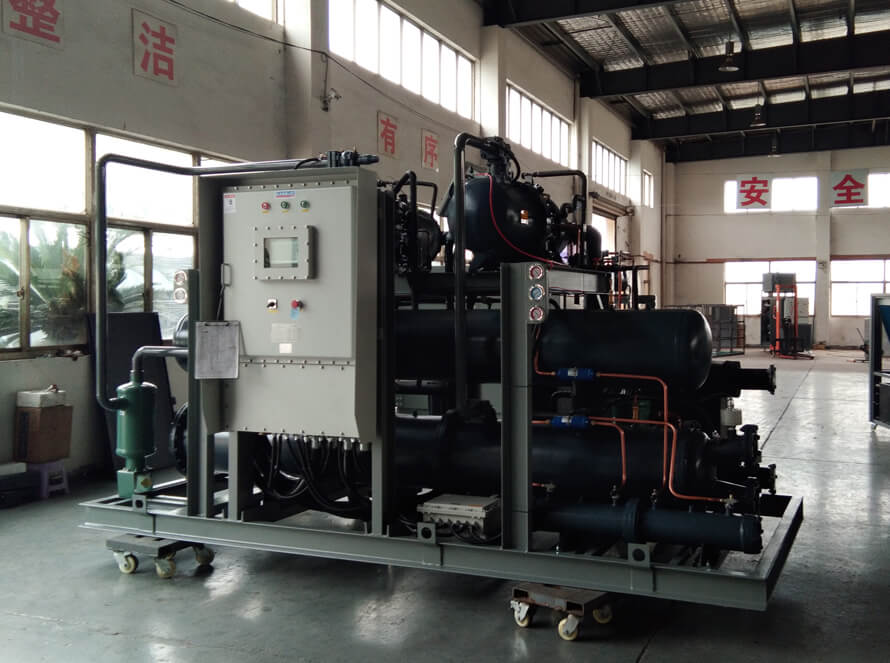 制藥業用防爆型復疊制冷機組有活塞式和螺桿式,活塞式輸出功率10HP~40HP,螺桿式輸出功率40HP~160HP.冷水機組-90℃~200℃康士捷可生產