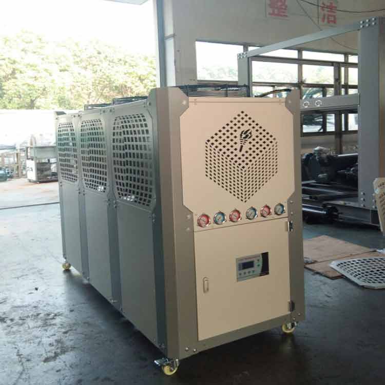 高頻焊機(jī)冷水機(jī) 高頻線圈冷水機(jī)是一種水冷卻設(shè)備,冷水機(jī)是一種能提供恒溫、恒流、恒壓的冷卻水設(shè)備。冷水機(jī)工作原理是先向機(jī)內(nèi)水箱注入一定量的水,通過冷水機(jī)制冷系統(tǒng)將水冷卻,再由水泵將低溫冷卻水送入需冷卻的設(shè)備,冷水機(jī)冷凍水將熱量帶走后溫度升高再回流到水箱,達(dá)到冷卻的作用。冷卻水溫可根據(jù)要求自動調(diào)節(jié),長期使用可節(jié)約用水。因此,冷水機(jī)是一種標(biāo)準(zhǔn)的節(jié)能設(shè)備。